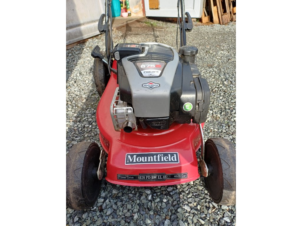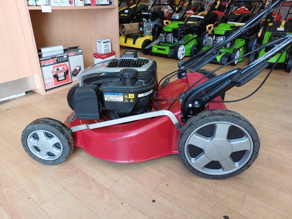 Benzinová sekačka s pojezdem, elektrickým startérem a americkým motorem Briggs & Stratton.