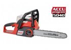 Akumulátorová řetězová pila. Délka lišty: 30 cm, akumulátor: 2 x 20V, hmotnost: 3,2 kg. Akumulátor a nabíječka nejsou součástí.