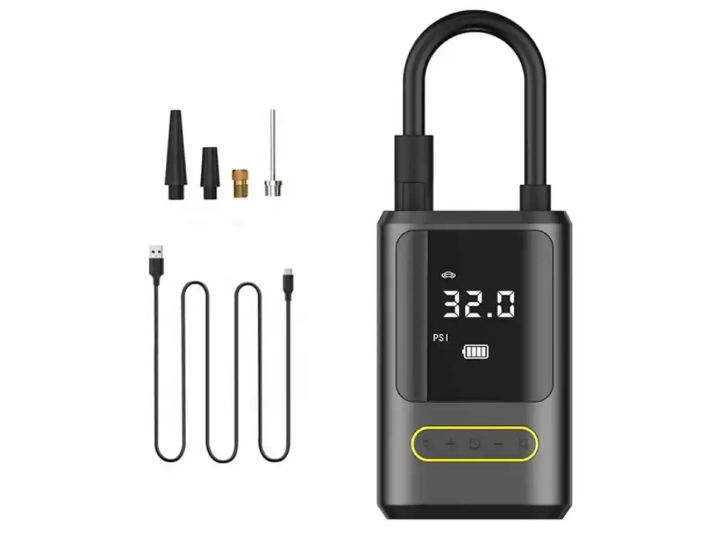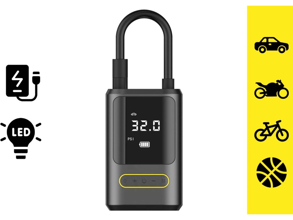 - Součástí sada adaptérů pro nafoukání všeho potřebného (míče, pneumatiky motocyklu, auta, kola, elektrokoloběžky, nafukovací matrace, bazénku atd.)