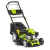 Benzínová sekačka 5 in 1 s pojezdem o 4 rychlostech a originálním motorem HECHT OHV. Koš 60 l, záběr 46 cm. Hmotnost 36,7 kg.